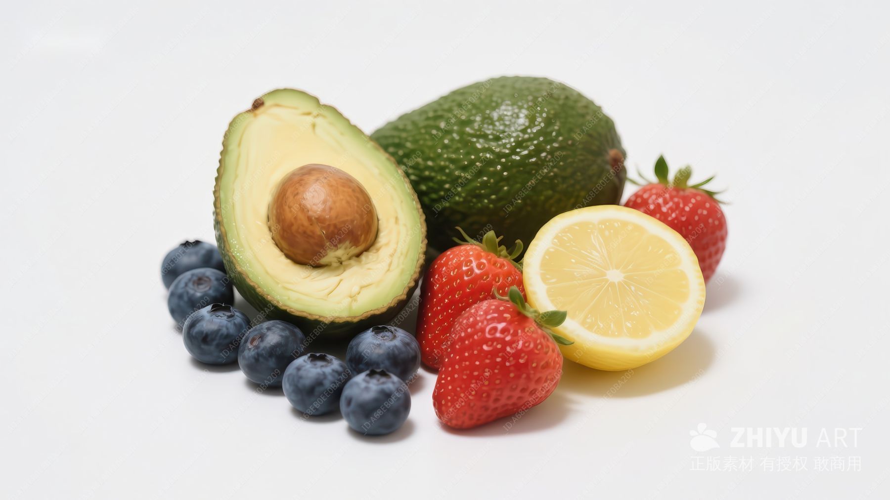 新鲜水果组合:牛油果、蓝莓、草莓和柠檬 1037