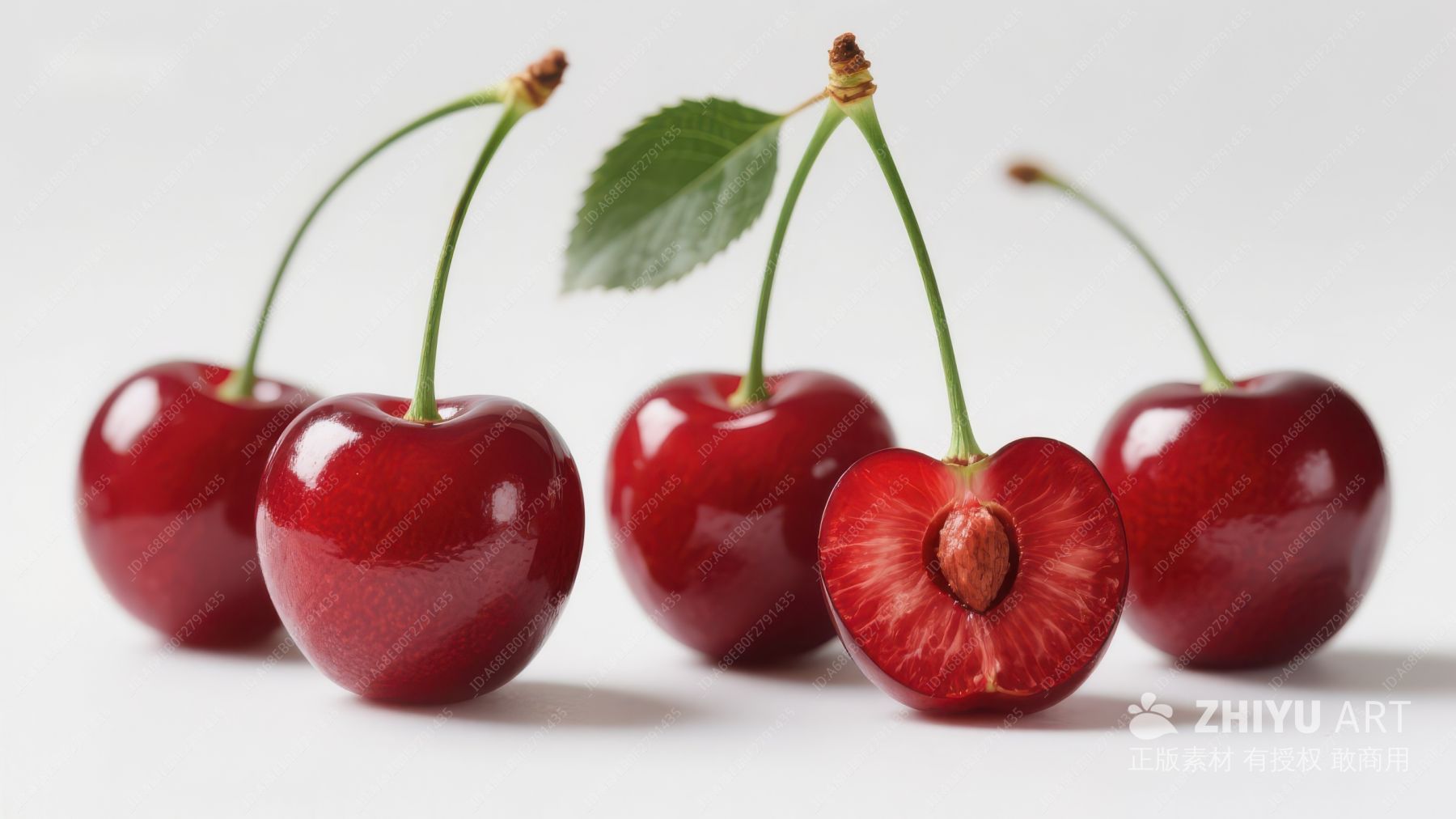 新鲜樱桃特写,一颗切开展示果肉