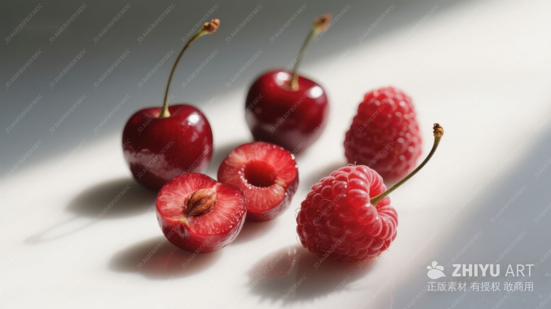 樱桃与覆盆子的静物组合