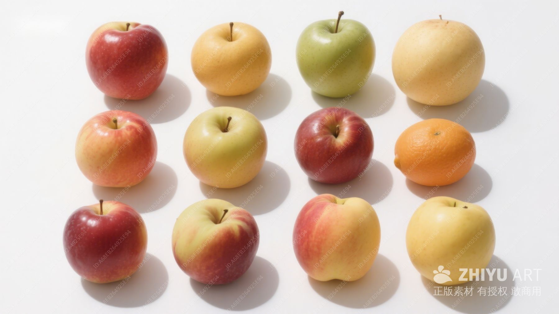 色彩渐变的苹果与梨排列