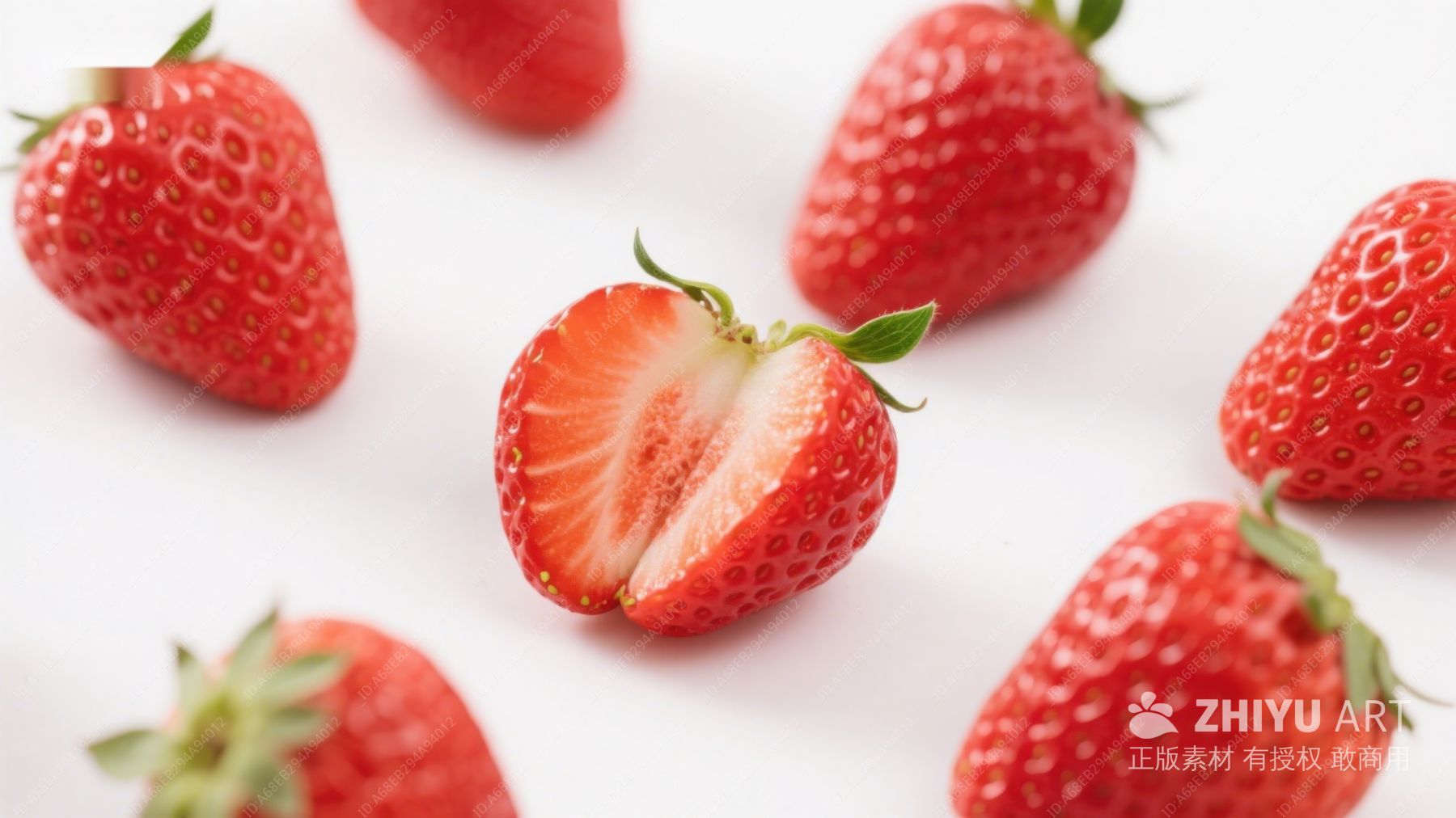 新鲜草莓特写,一颗切半展示内部 534
