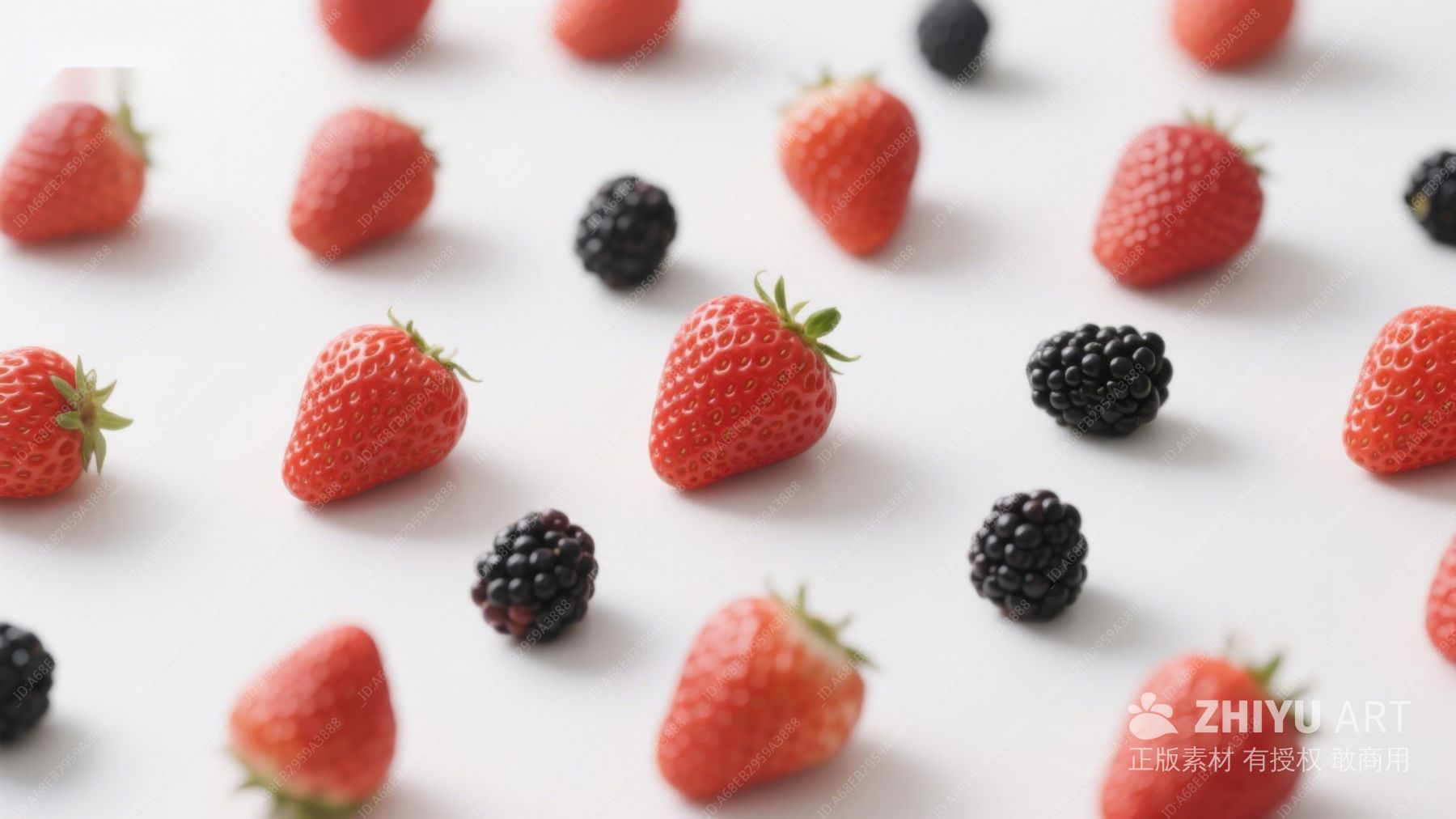 新鲜草莓与黑莓的排列展示 552