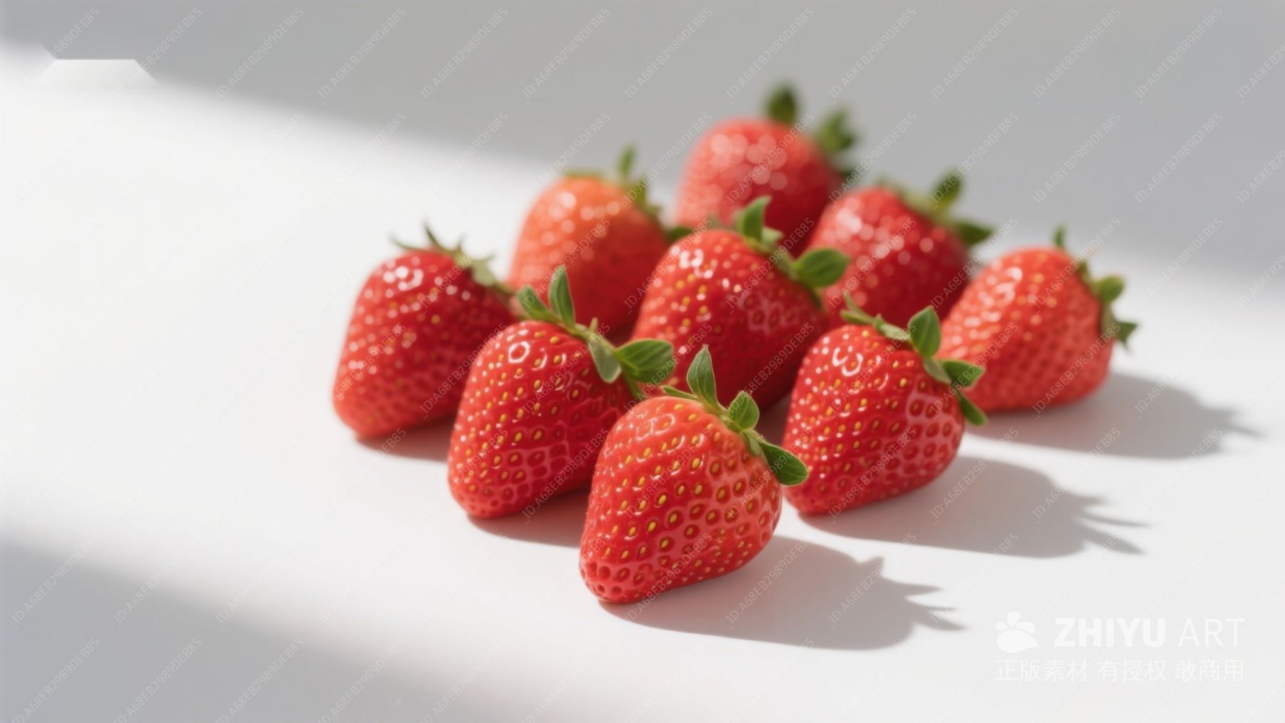 新鲜草莓静置于明亮背景