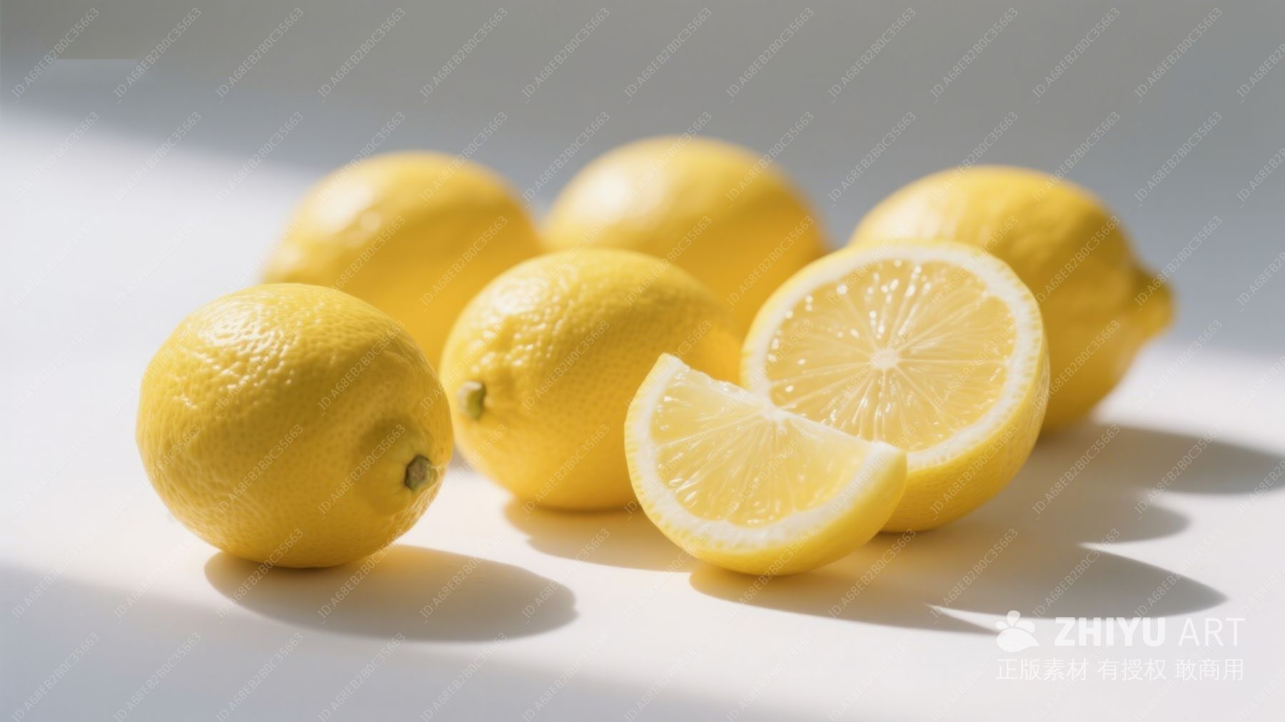 新鲜柠檬与切片的静物展示