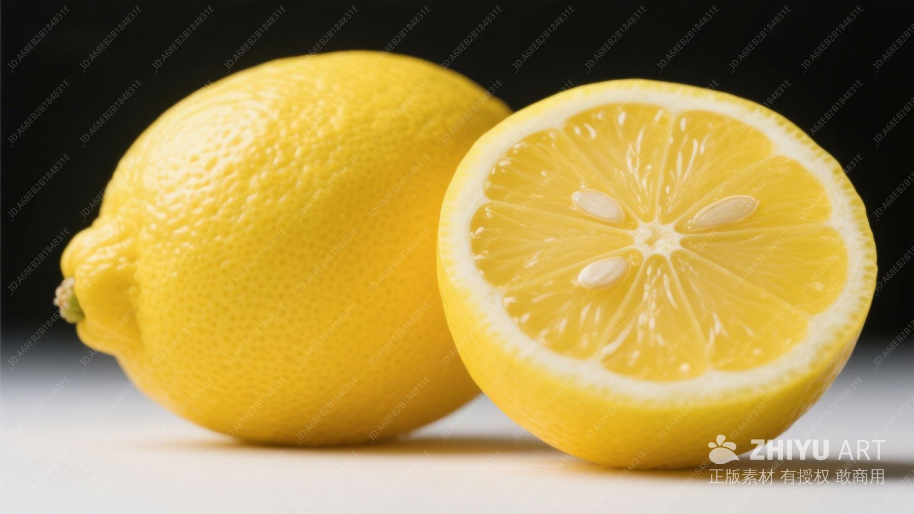 切开的柠檬,展示鲜艳黄色果肉