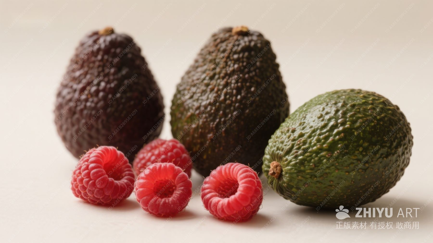 新鲜水果组合:牛油果、蓝莓与覆盆子 1042