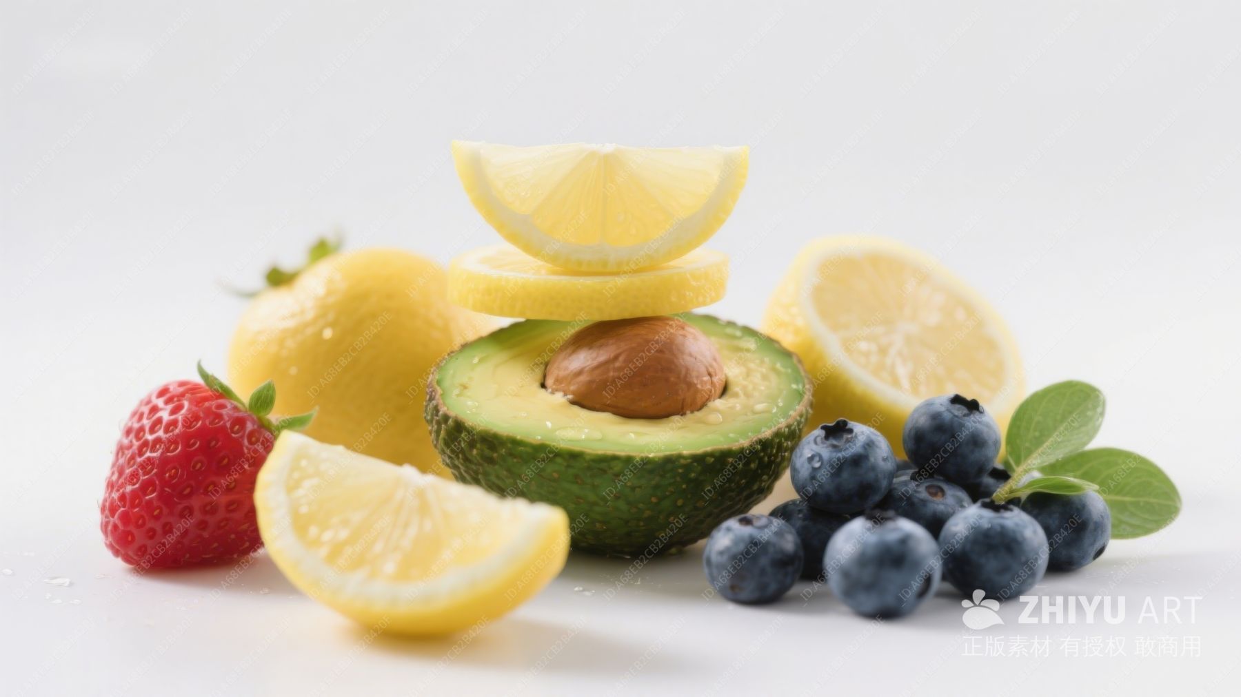 新鲜水果组合:柠檬、草莓、蓝莓和牛油果 1023