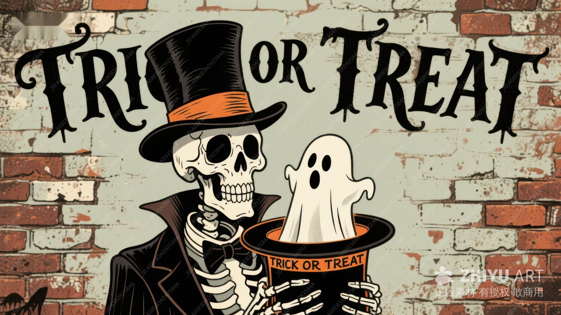 骷髅与幽灵的万圣节主题插画