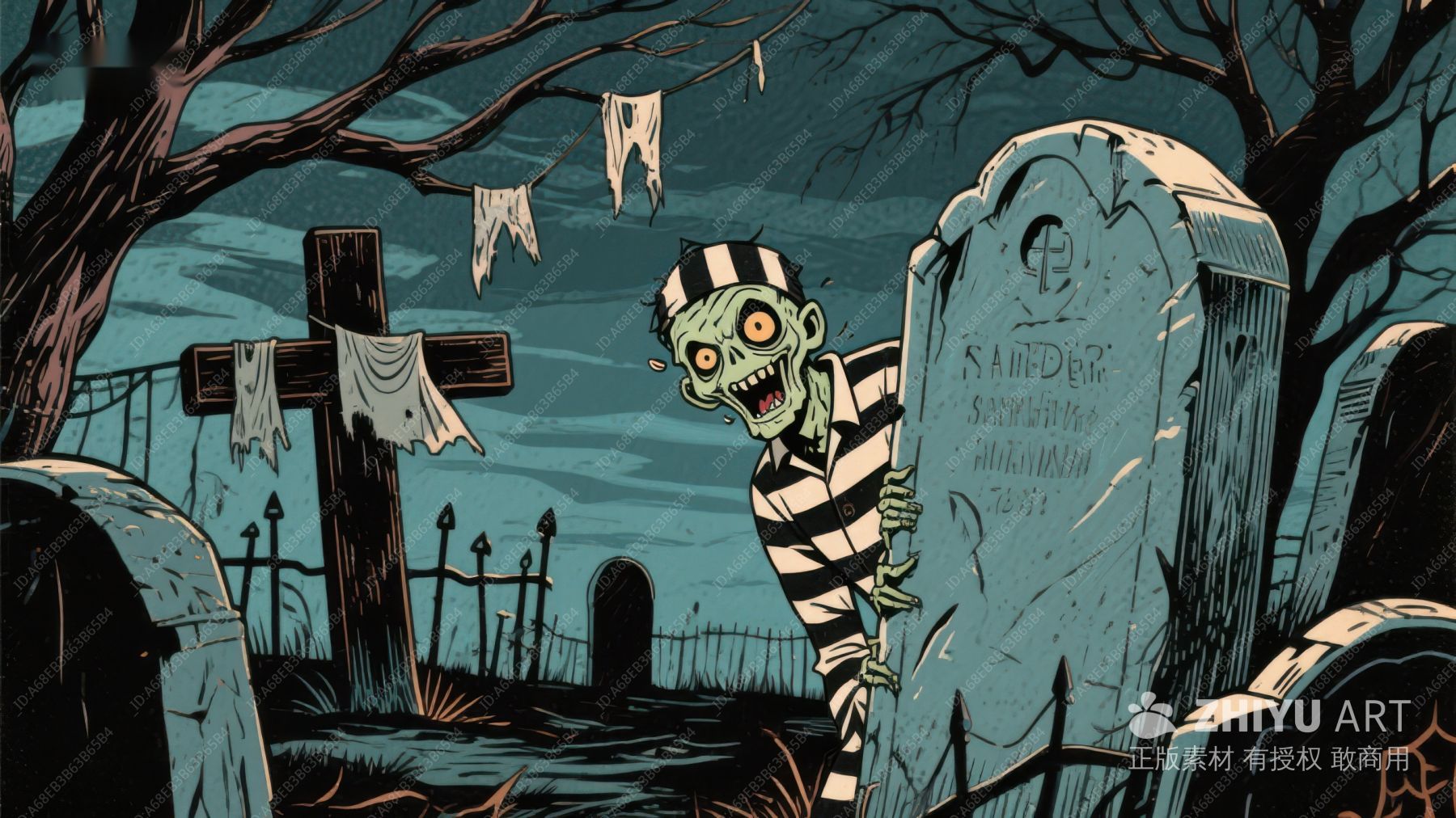 墓地骷髅手持“不给糖就捣蛋”旗帜