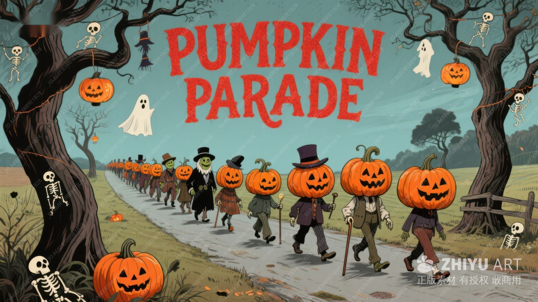 万圣节南瓜与幽灵的欢乐游行