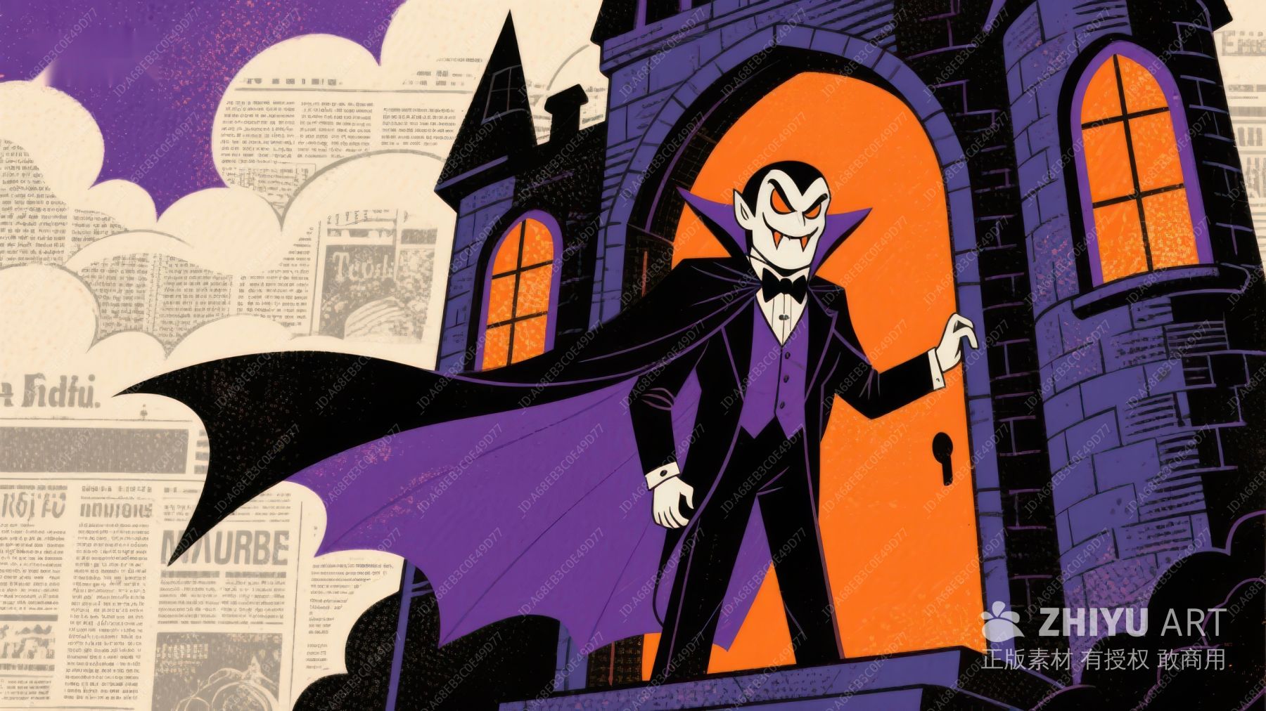 吸血鬼城堡夜景插画