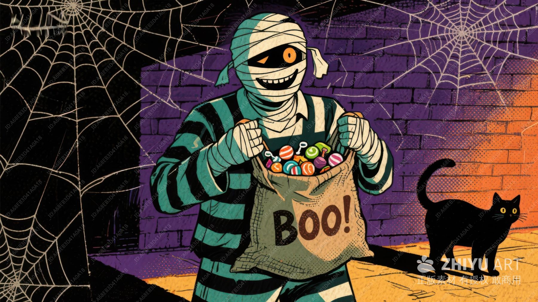 万圣节夜,木乃伊与小恶魔的糖果冒险