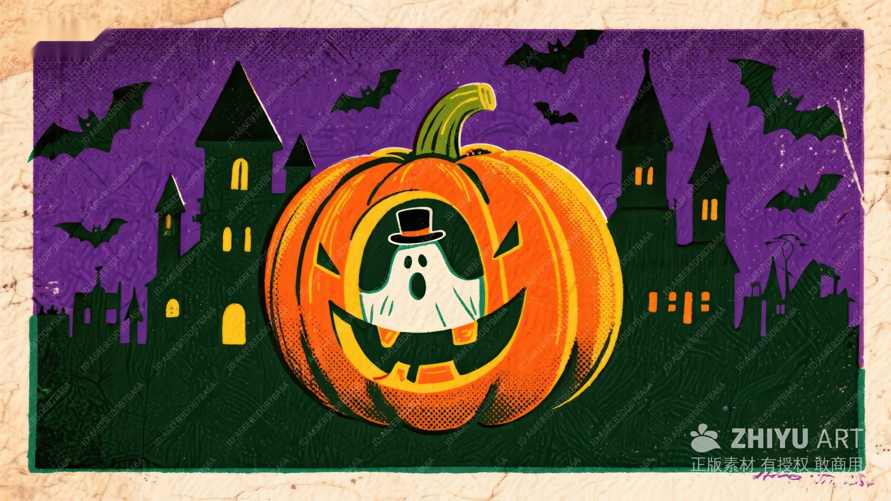 万圣节南瓜灯与幽灵环绕的神秘城堡 552