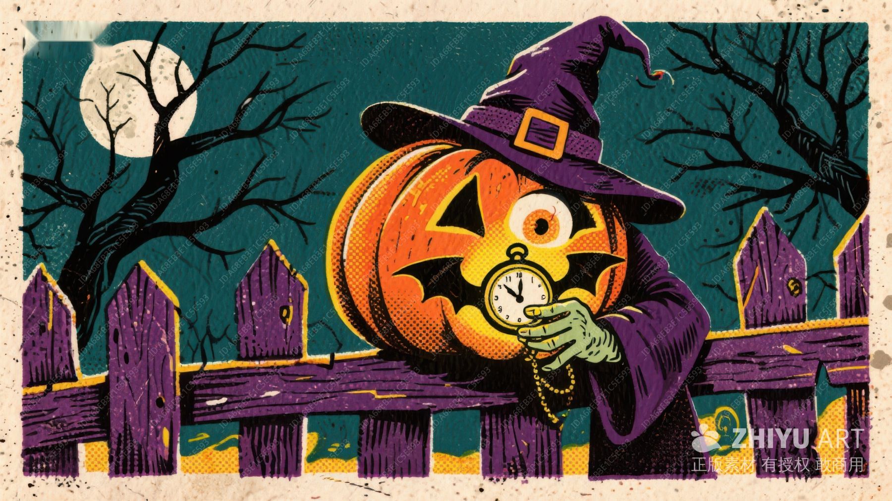 万圣节南瓜巫师手持怀表