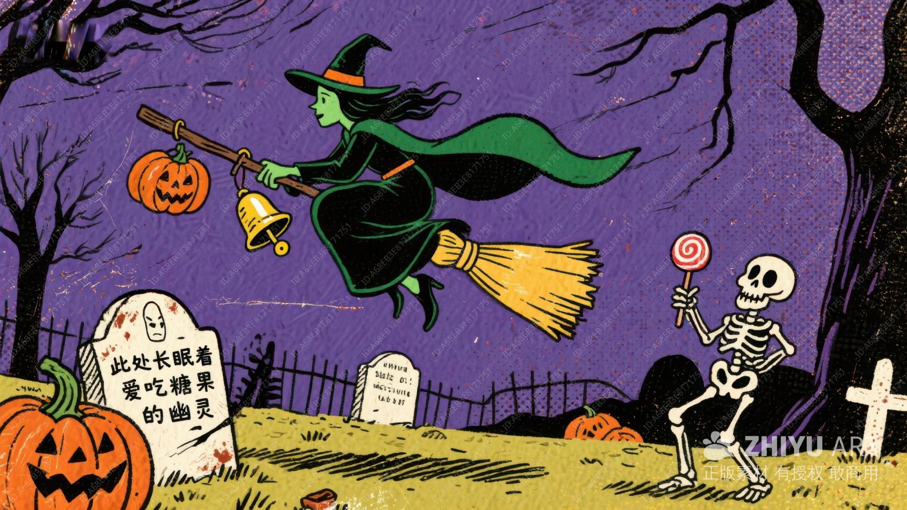 万圣节夜景:鬼怪与糖果的奇幻场景