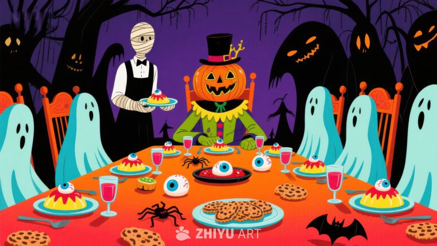 万圣节派对:鬼怪共聚餐桌