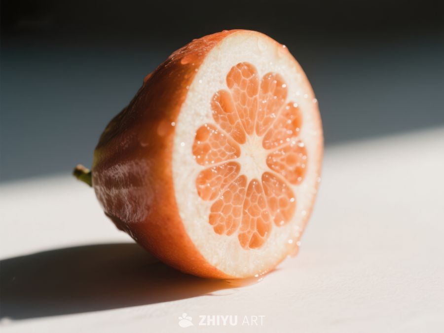切开的橙色果实,展示内部纹理 306