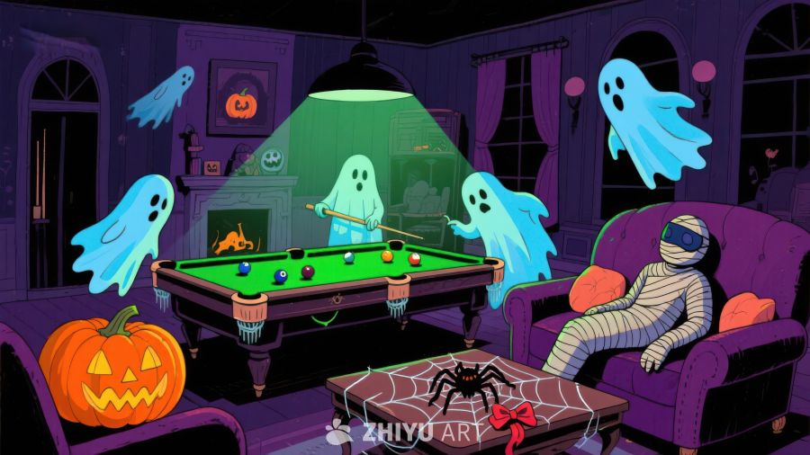 万圣节幽灵聚会,台球桌上的狂欢