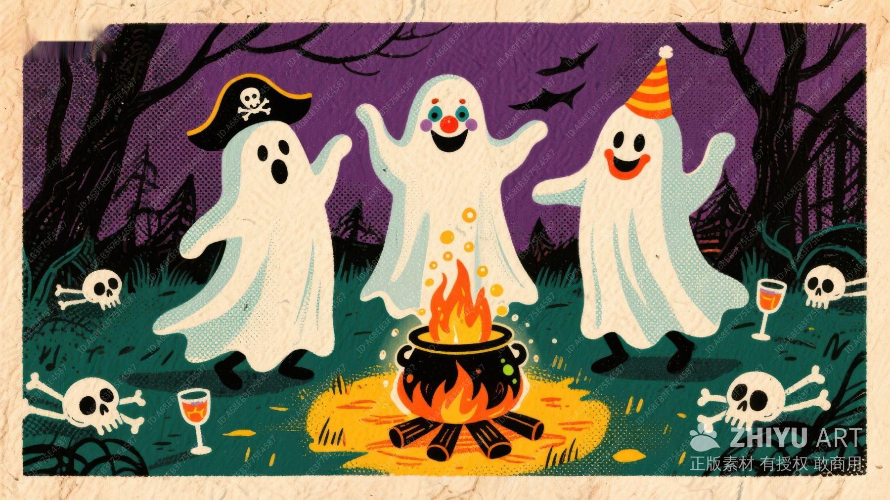 万圣节幽灵围篝火欢聚