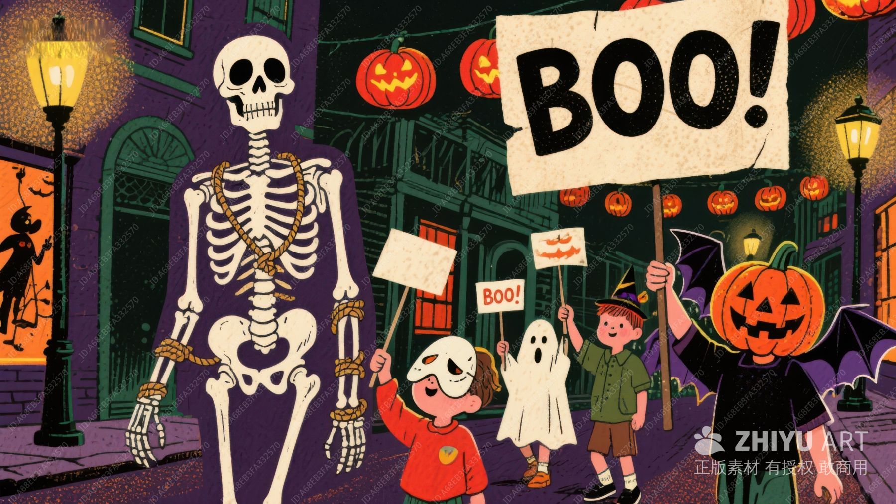 万圣节夜游:幽灵、骷髅与南瓜灯