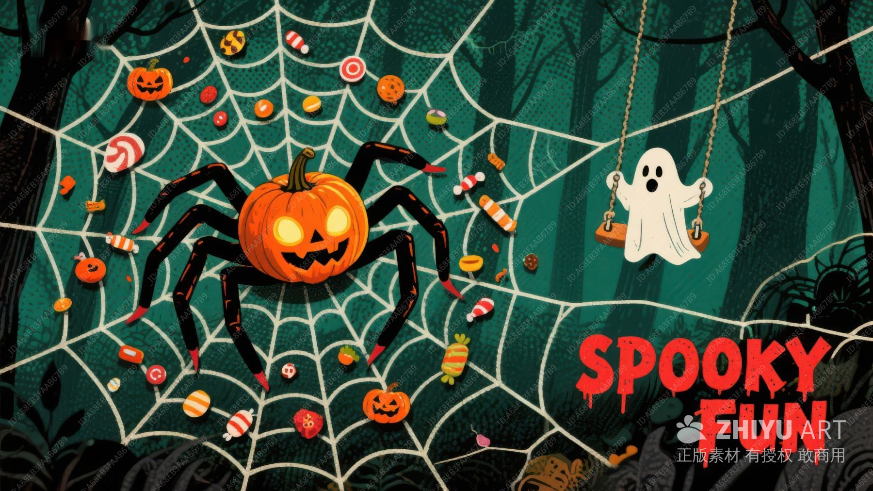万圣节夜景:南瓜、幽灵与蜘蛛的奇幻冒险