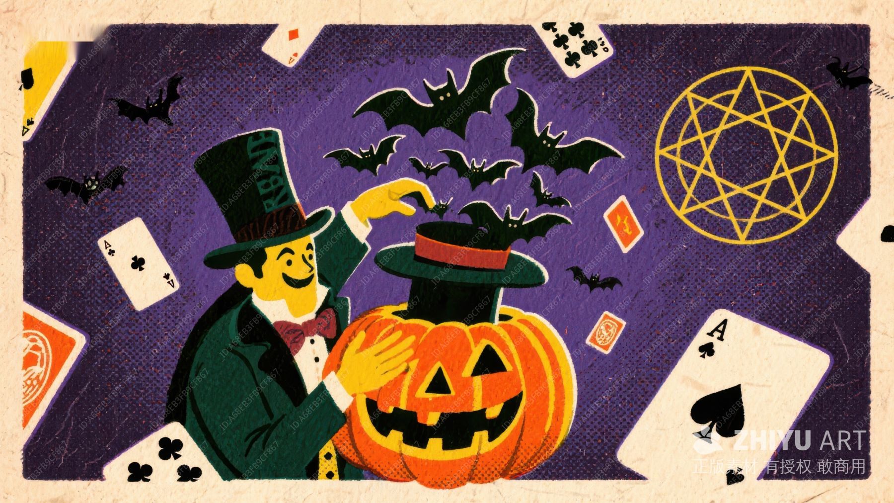 万圣节南瓜手持“不给糖就捣蛋”标志