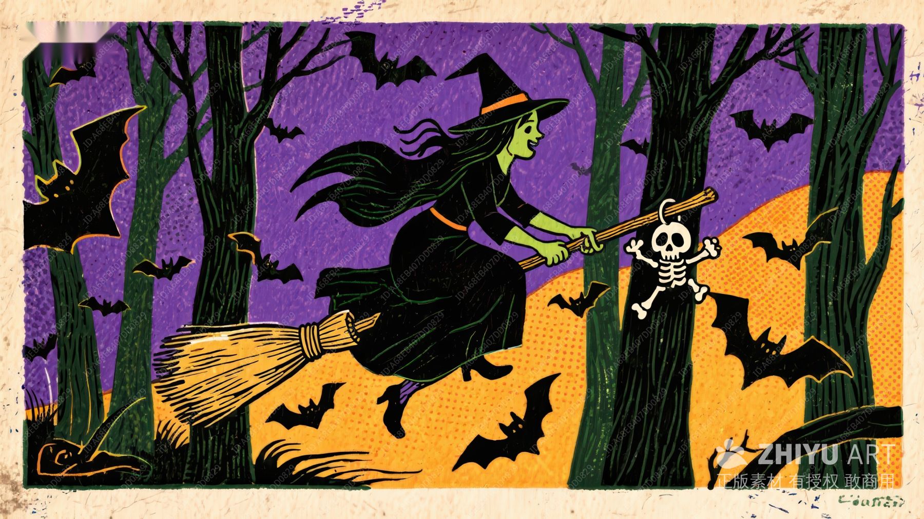 万圣夜巫女飞越森林