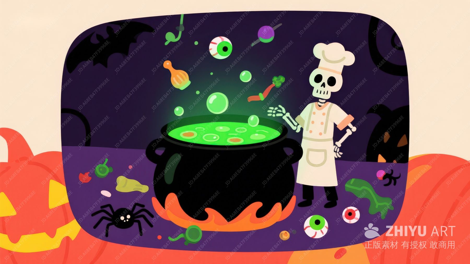 万圣节魔法锅与骷髅厨师
