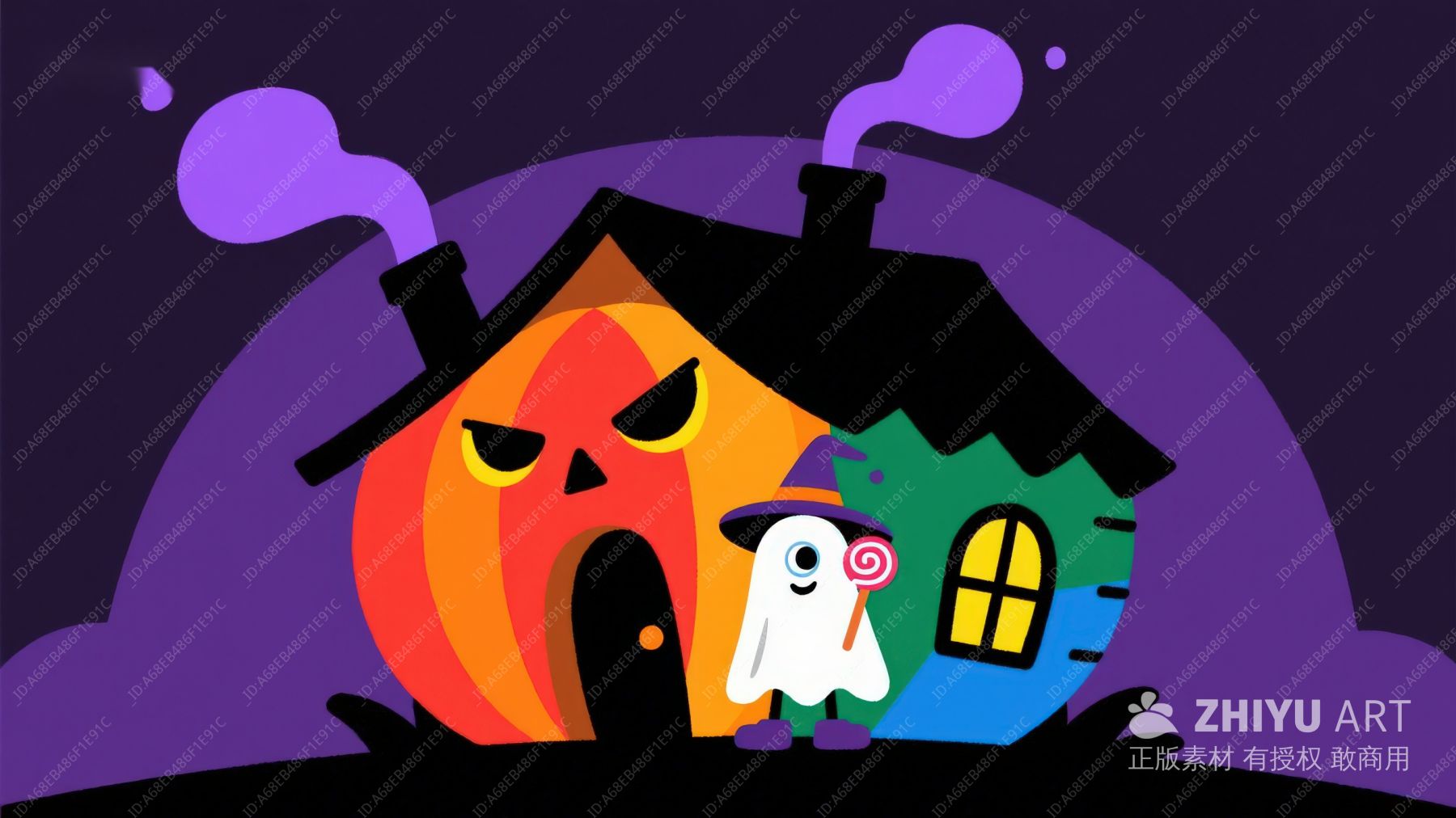 万圣节夜景:南瓜、幽灵与蜘蛛的奇幻冒险