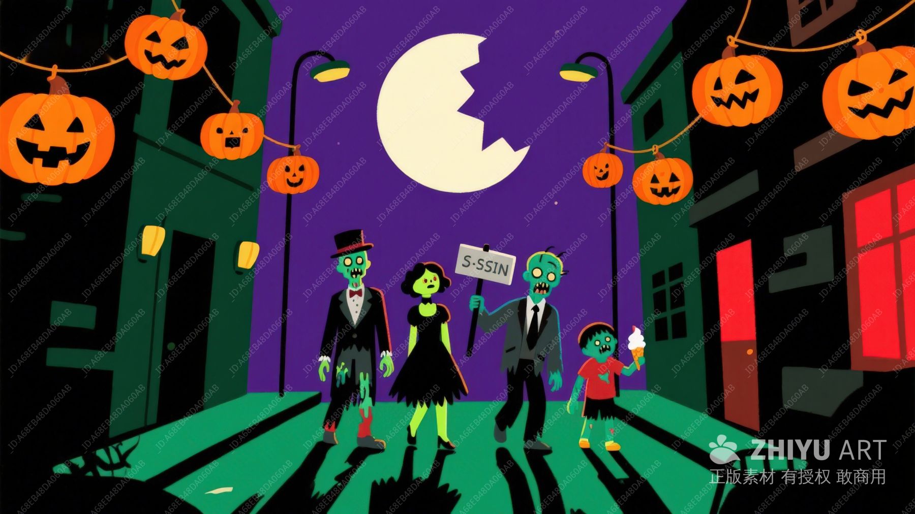 万圣节快乐:南瓜灯与幽灵蝙蝠