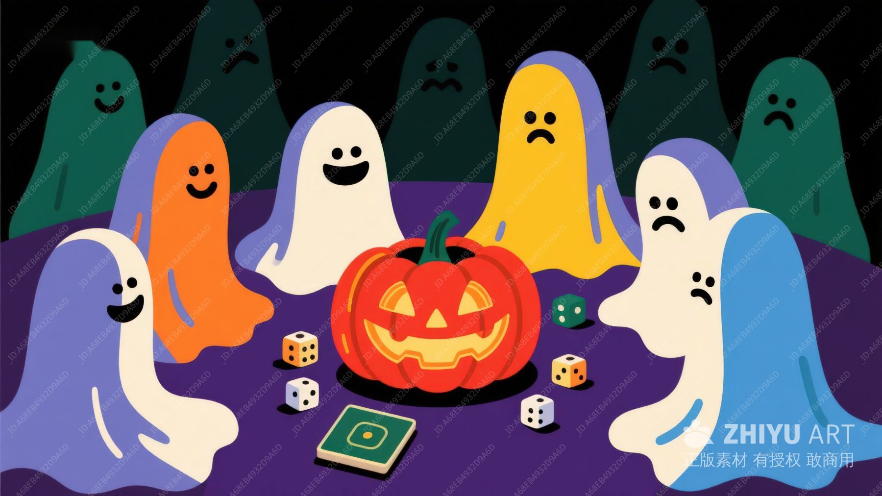 万圣节夜,鬼魂与南瓜灯的欢乐场景