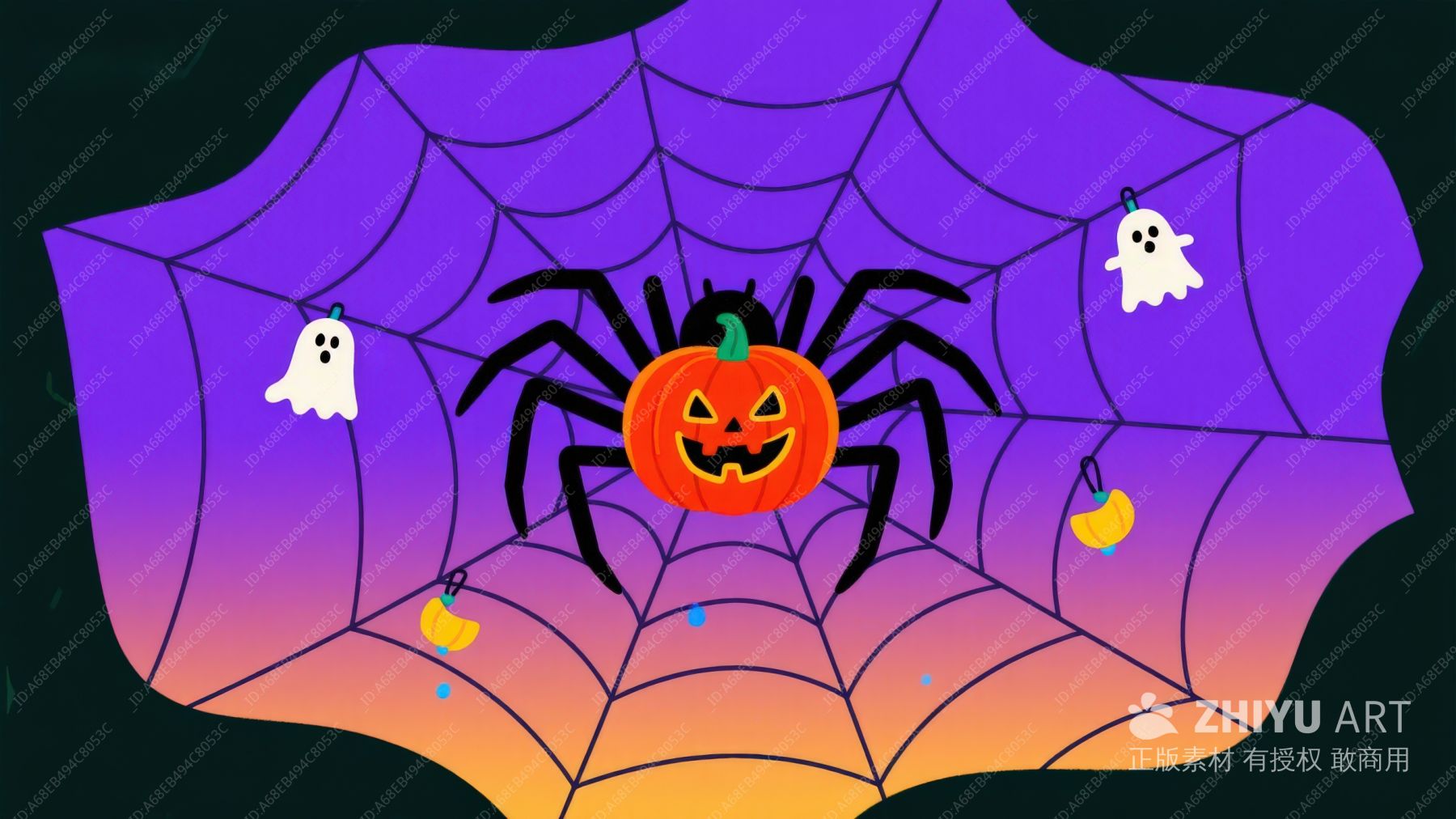 万圣节夜景:鬼魂、蜘蛛与南瓜灯