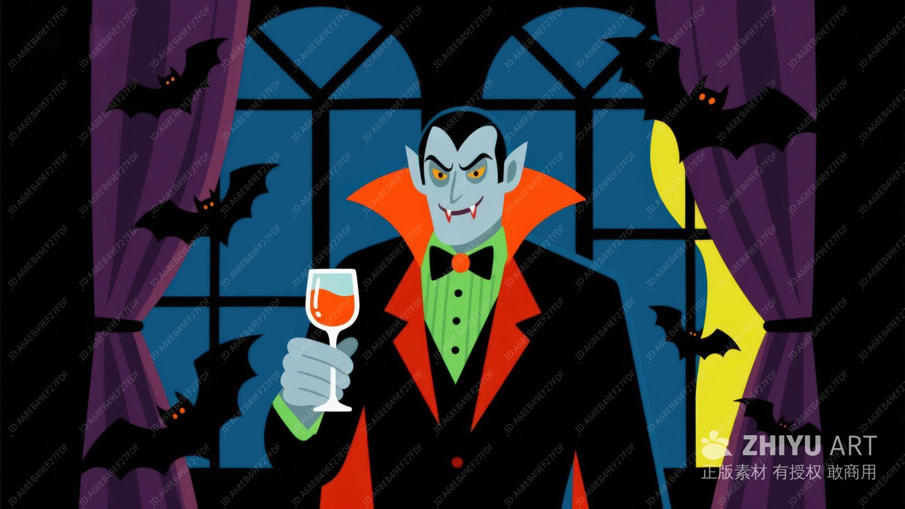 吸血鬼举杯,蝙蝠环绕