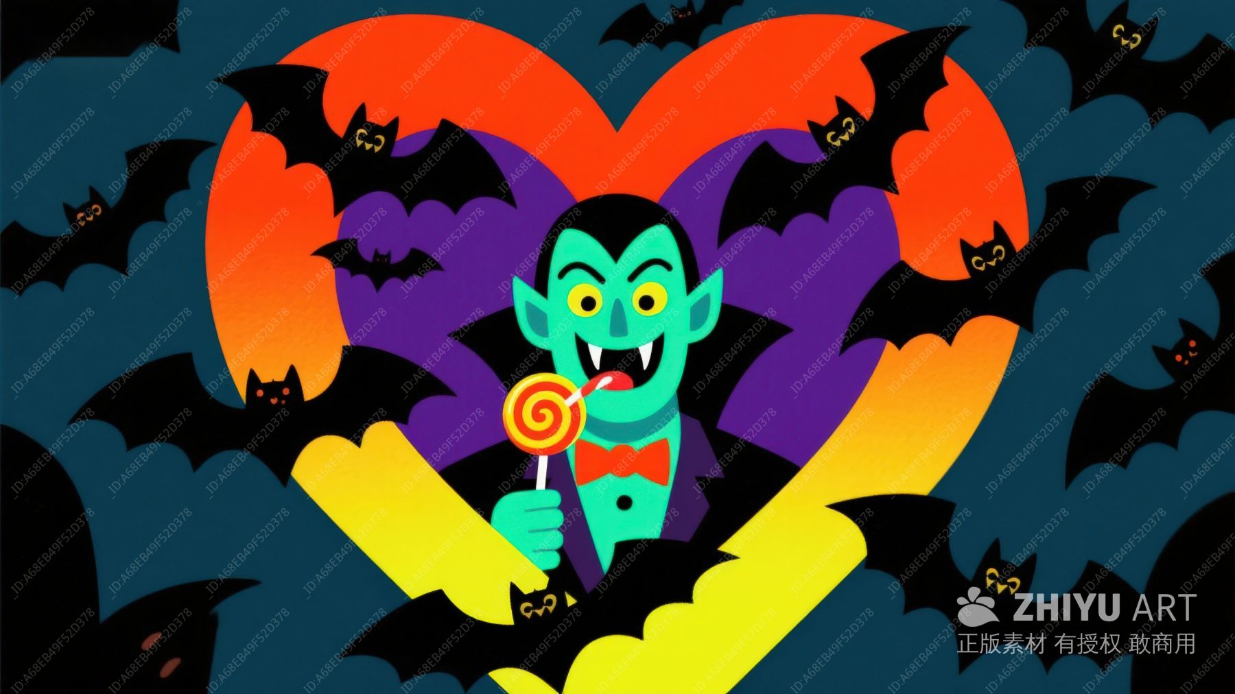 吸血鬼手持酒杯,背景心形与蝙蝠