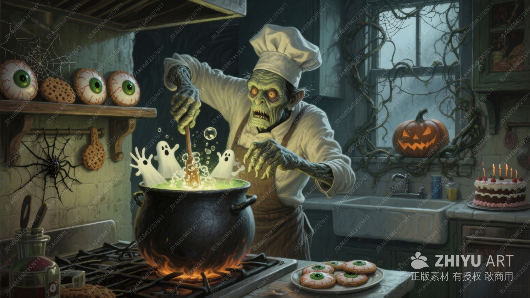 万圣节厨房里的僵尸厨师
