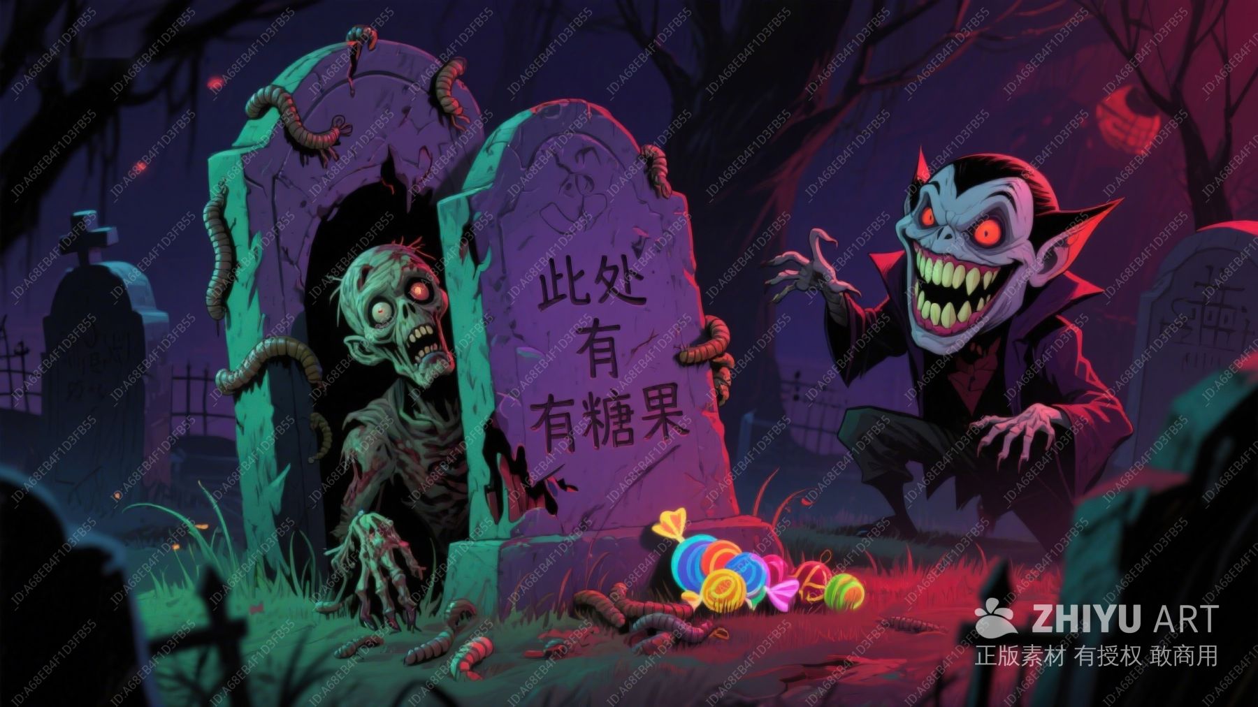 墓地糖果诱惑:僵尸与吸血鬼的夜晚