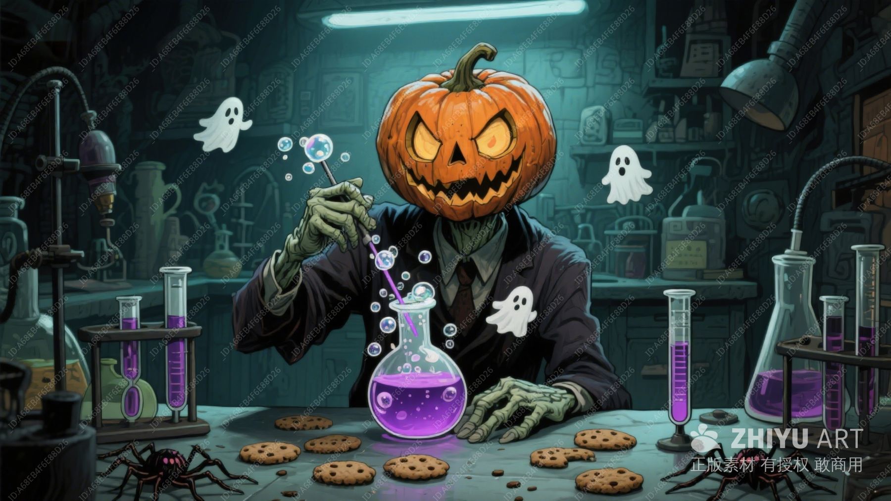 实验室里的绿色怪物与南瓜灯