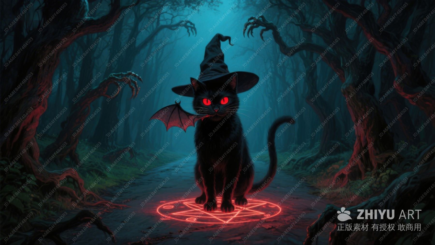 月夜森林中的巫师猫