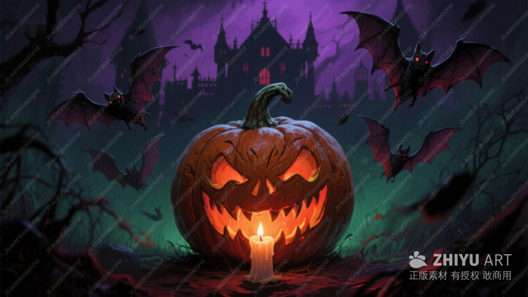 万圣节南瓜灯与蝙蝠的神秘夜景