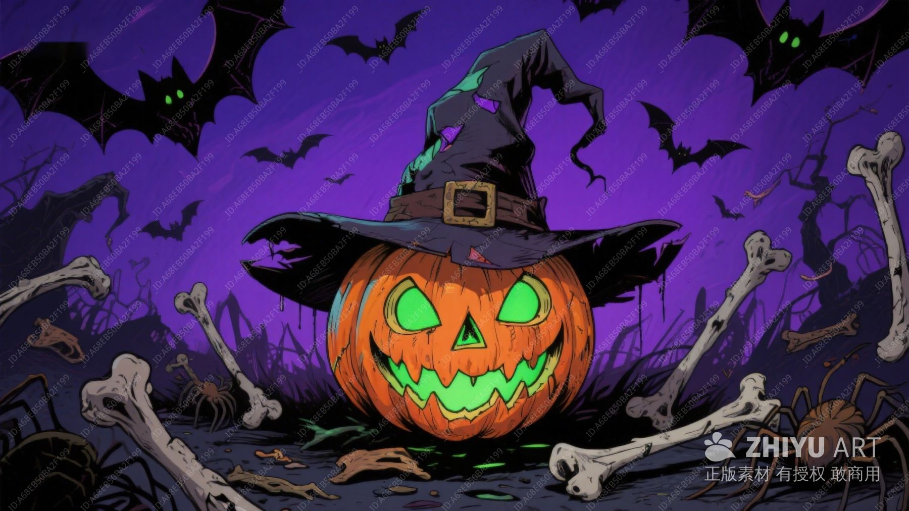 万圣节南瓜与骷髅巫师