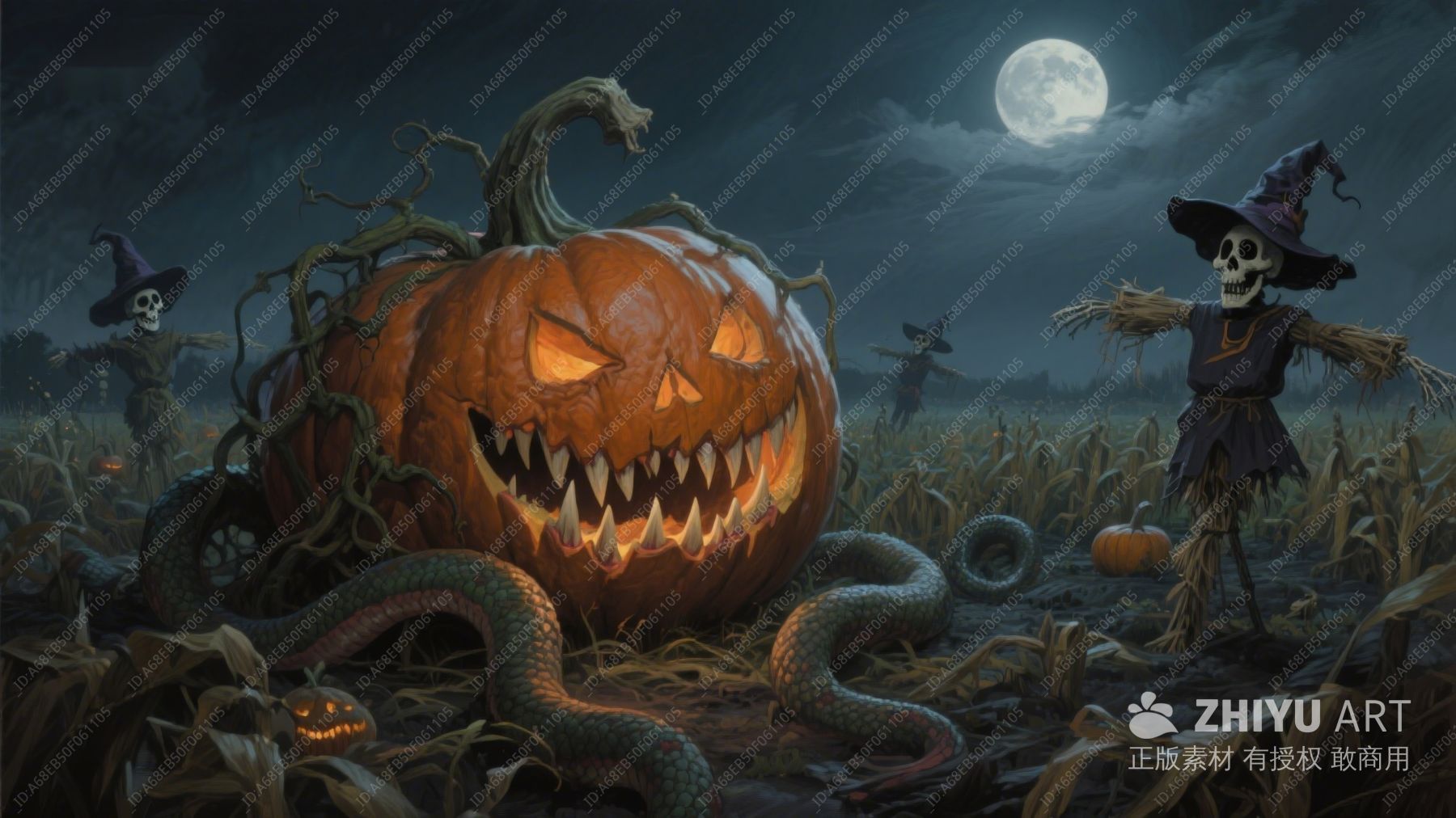 万圣节夜景:南瓜灯与骷髅的狂欢