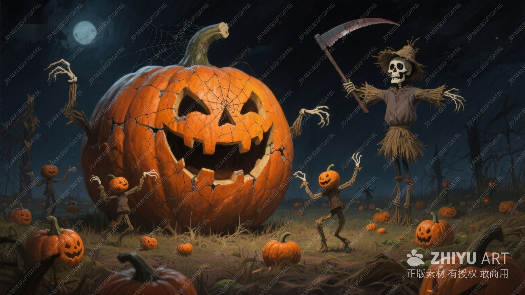 万圣节夜景:南瓜灯与骷髅的狂欢