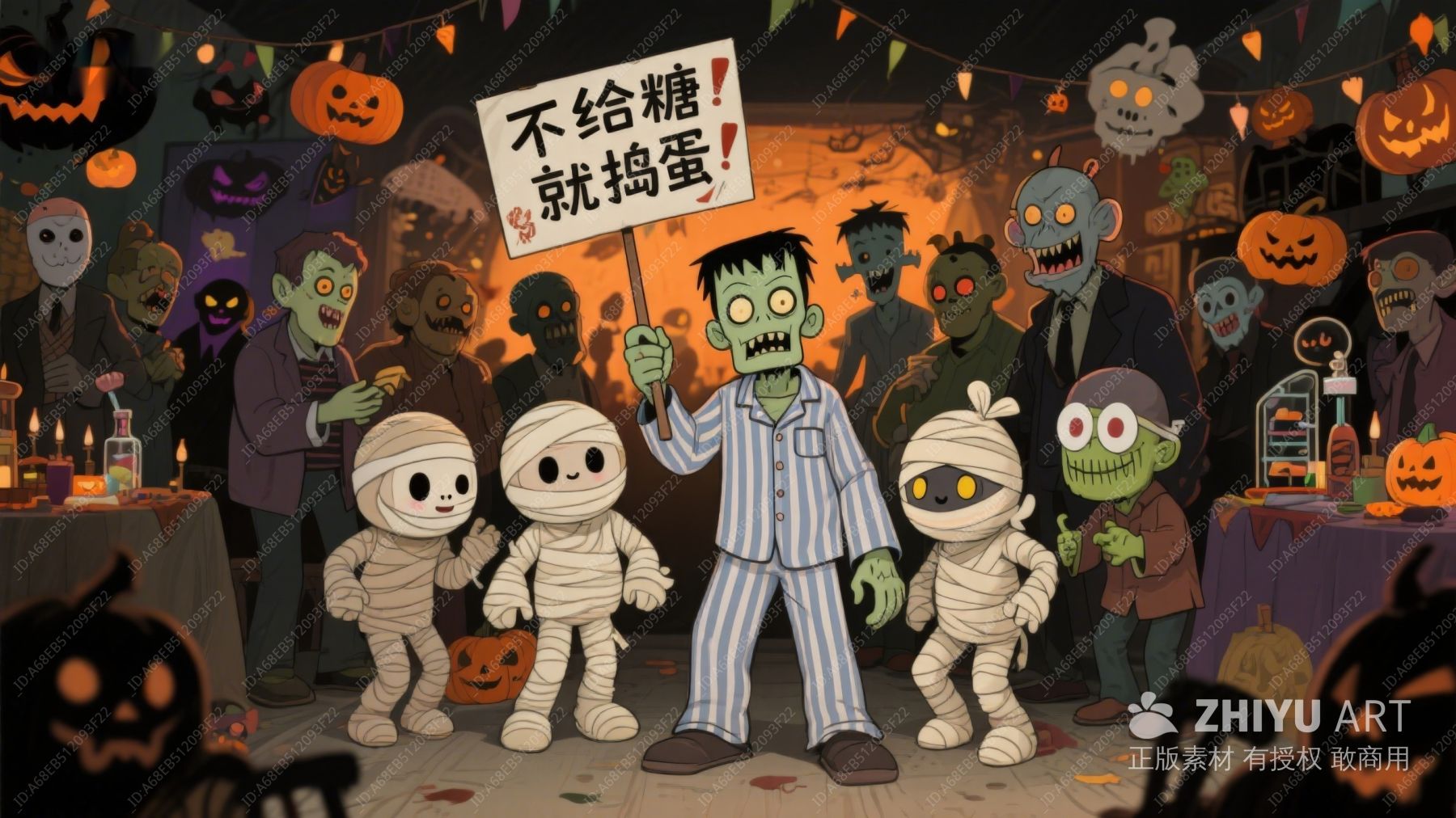 万圣节派对上的木乃伊与僵尸