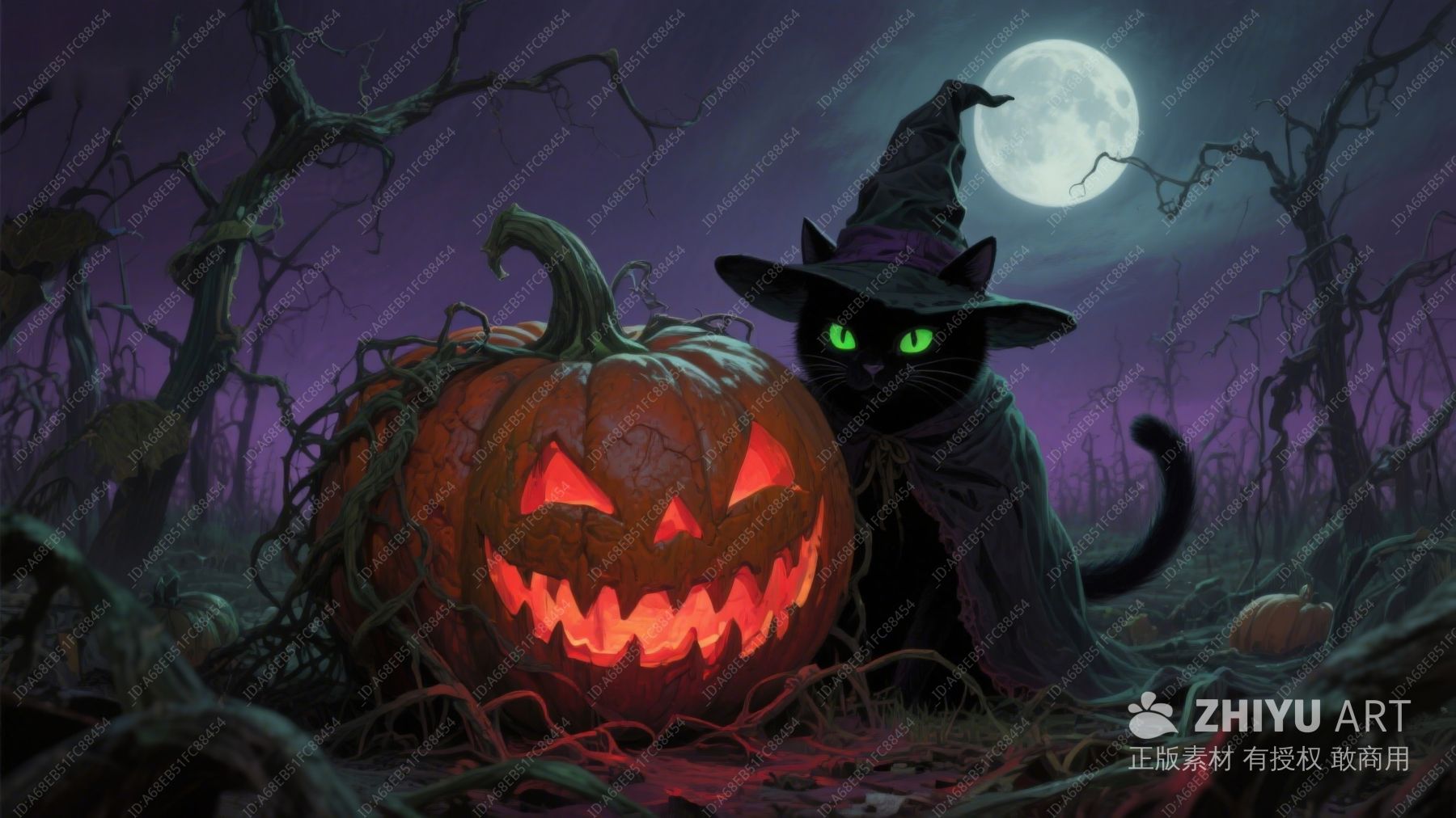 万圣夜南瓜与黑猫