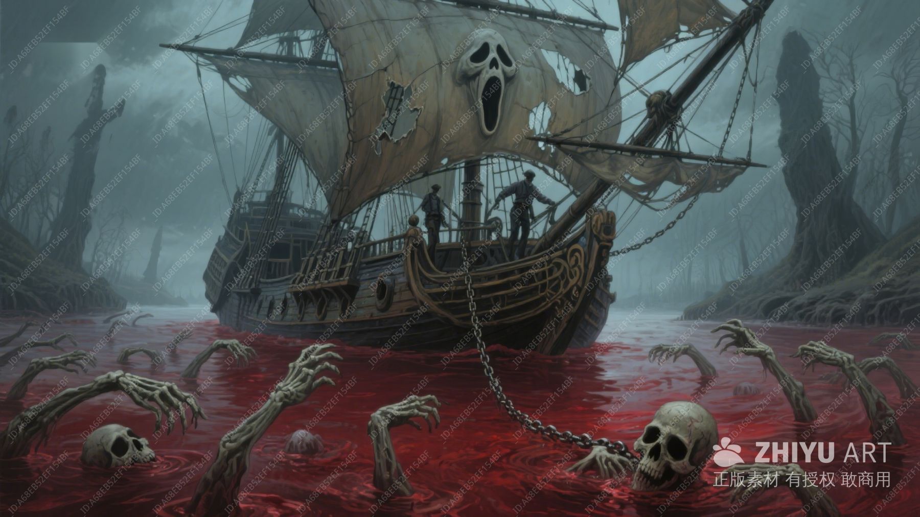 幽灵船在血色水域中航行