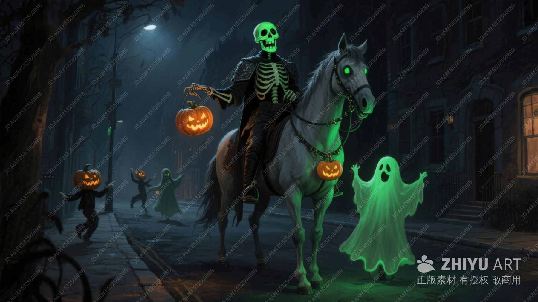 万圣节夜游:幽灵、骷髅与南瓜灯