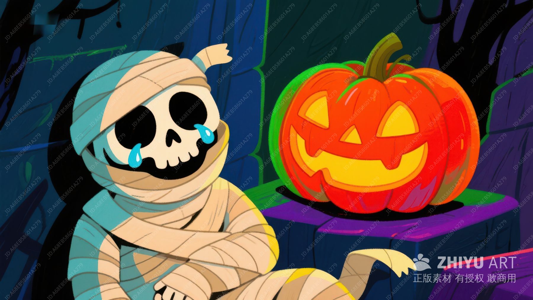哭泣木乃伊与南瓜灯的万圣夜