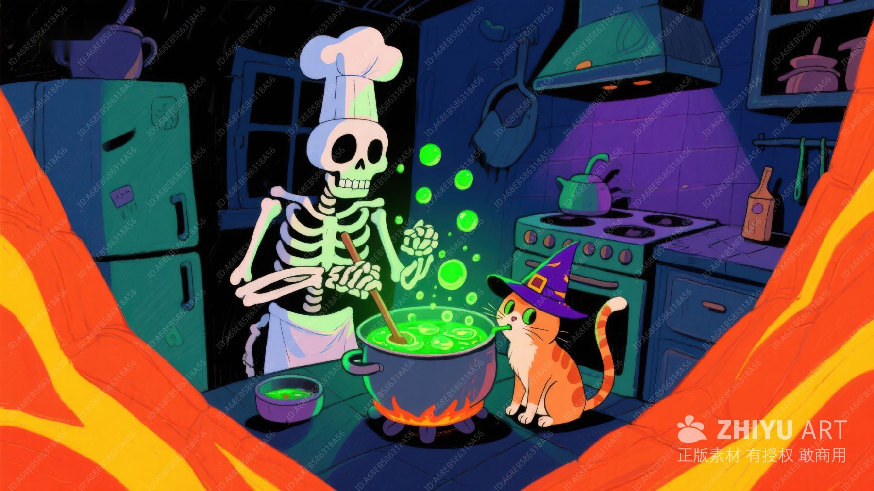 万圣节魔法锅与骷髅厨师