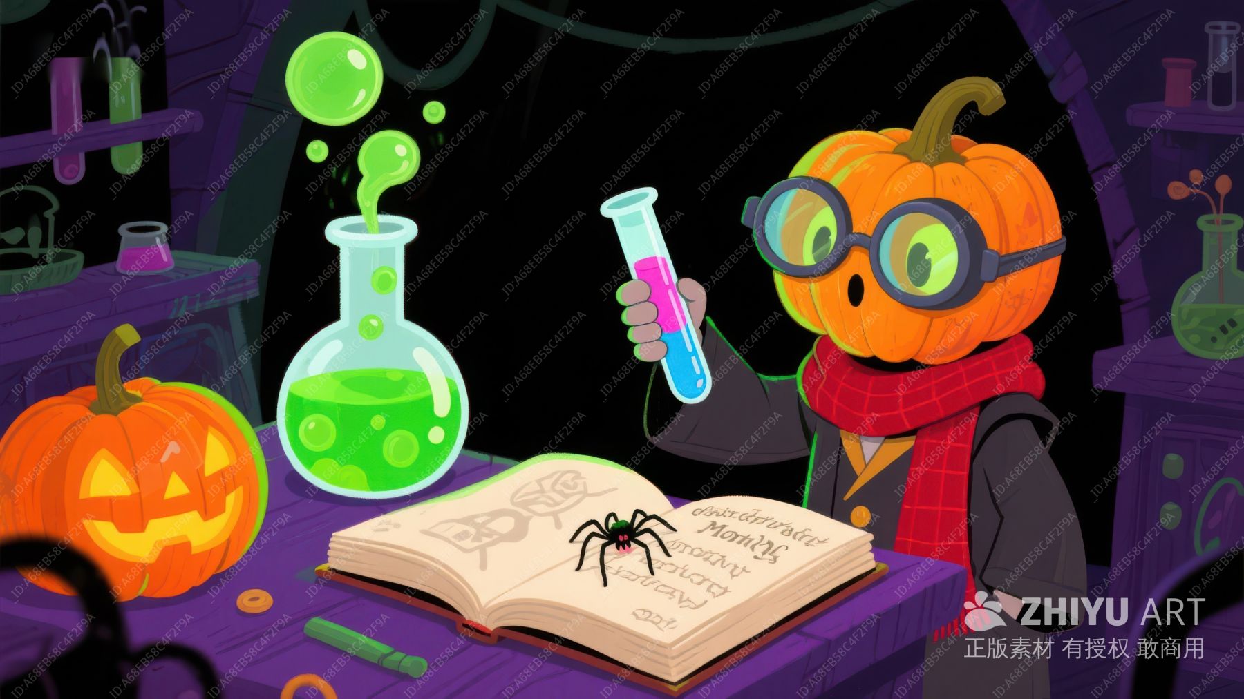 万圣节主题插画:南瓜与魔术师