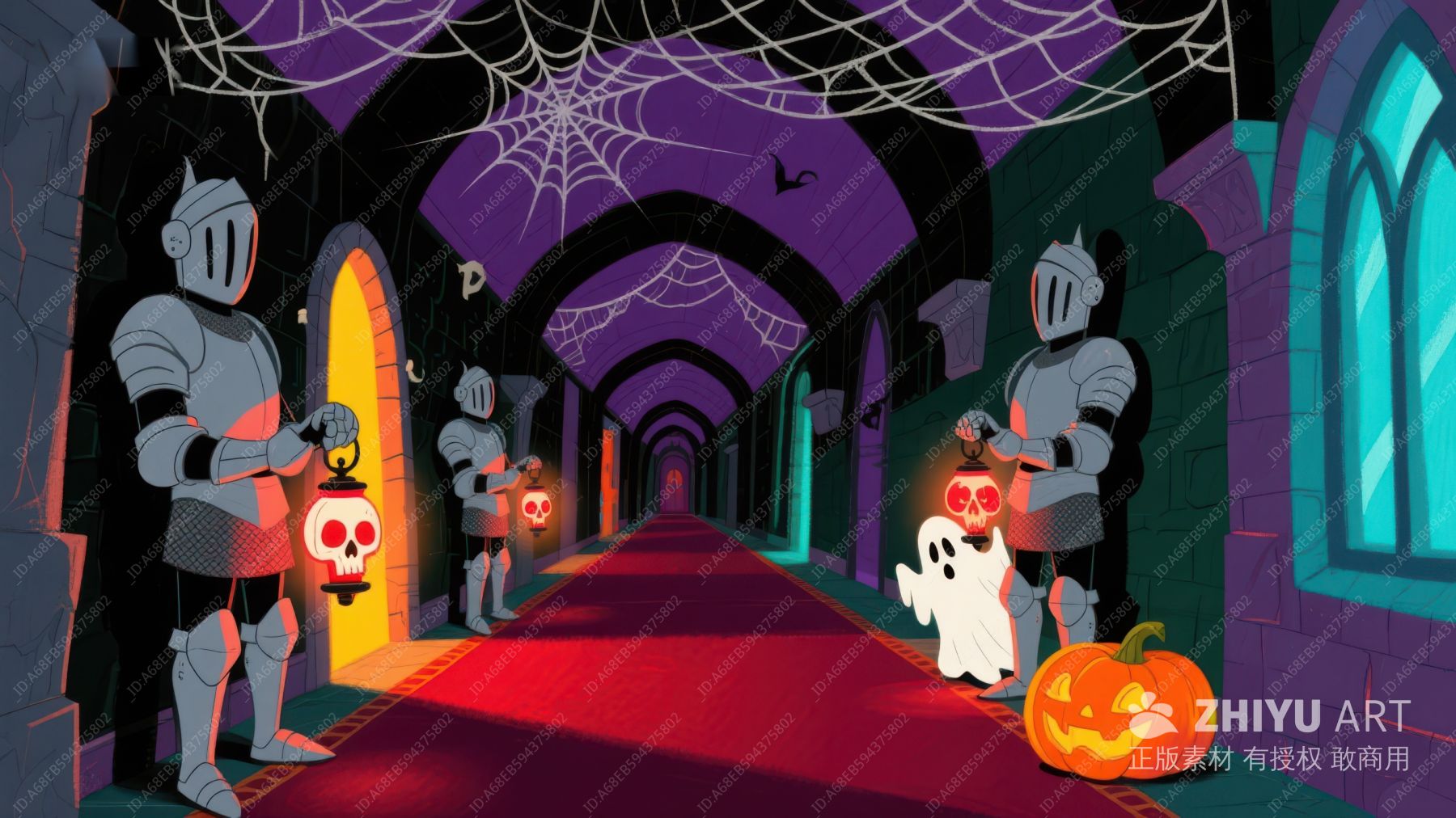 万圣节城堡夜景:蜘蛛与幽灵的狂欢